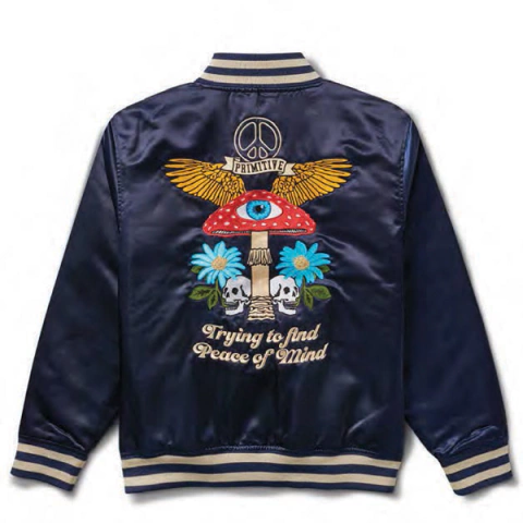 Jaqueta Primitive Skateboarding importada / modelo varsity / bordados na parte traseira, frontal e bolsos laterais.
