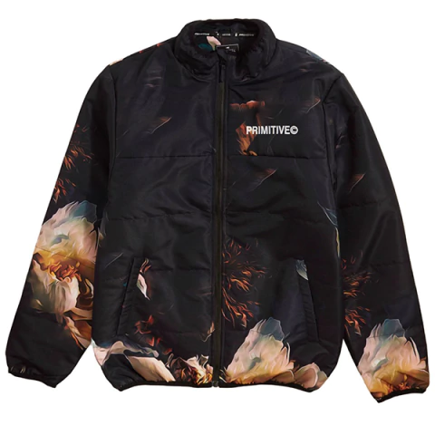 Material externo, forro e enchimento 101% poliéster Frente com zíper Gráfico impresso em toda a peça Bolso com zíper no lado esquerdo do peito com a marca acima Bolsos para as mãos Cortes laterais Punhos e cintura elásticos Lavagem à mão