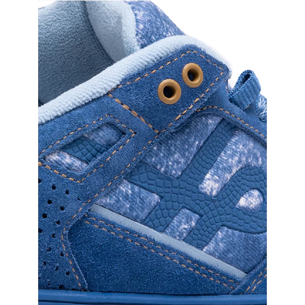O cabedal é feito em camurça curtida sem metais pesados, combinado a materiais sintéticos e sarja de algodão estampada, em referência ao denim, trazendo textura e aparência de jeans desgastado. Para completar, o modelo recebe detalhes em dourado e costuras em ocre que remetem ao verdadeiro medalhado. O forro atoalhado garante conforto e respirabilidade, enquanto o passador estilo aba permite que a calça se ajuste naturalmente sobre o tênis, de acordo com o estilo que preferir.